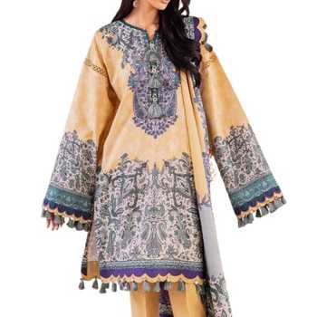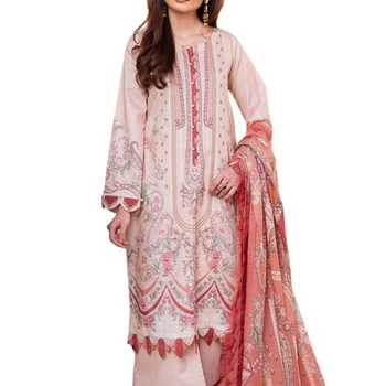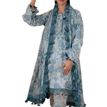 Césped cosido personalizado para mujer Salwar Kameez con cintura natural de algodón con estampado paquistaní Dupatta