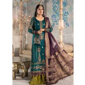 Precio razonable, vestidos de fiesta elegantes informales para mujer, conjuntos de pantalones de camisa bordados largos con borde bordado Dupatta