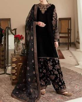 3 piezas completamente bordadas de terciopelo elegante vestido de camisa y pantalones con Cutwork bordado pesado Organza Dupatta conjuntos de Damas